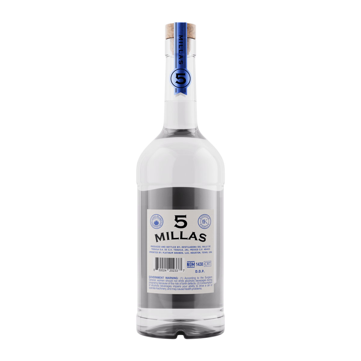 Tequila 5 Millas, 100% Agave, Blanco, 750 mL , 40%